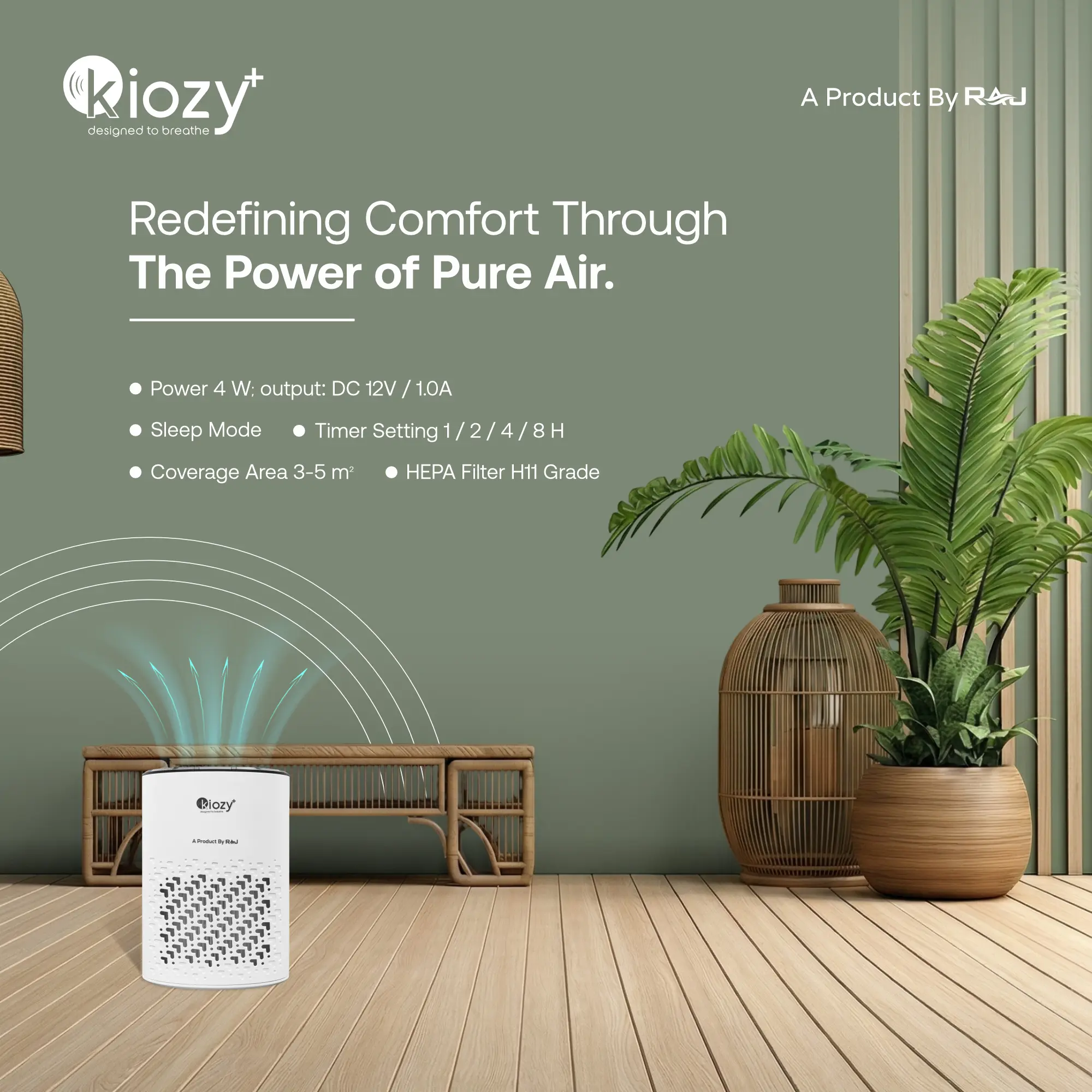 The Kiozy KJ 067 is built for small spaces where clean air matters the most. Designed specifically for bedrooms, this compact purifier combines efficient filtration with quiet operation so it works seamlessly in your daily routine without disturbance.